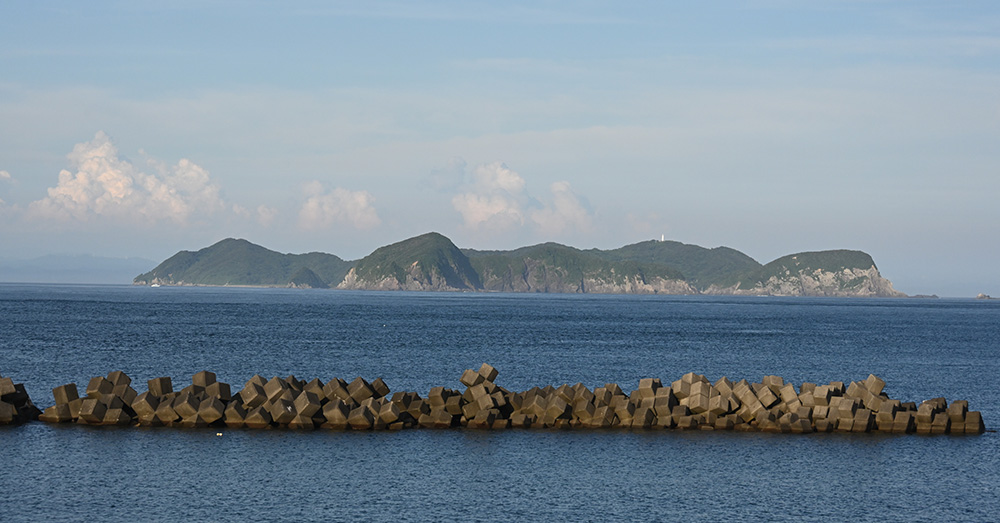かつての水田跡地に広がる湿地は、希少昆虫の貴重な生息地となっており、環境省の「日本の重要湿地500」にも選定されています。豊かな自然に加え、島の周囲には無数の荒磯が広がり、グレやチヌを狙う磯釣りの名所としても知られています。島の玄関口には防波のための巨大な水門が立ち並び、避難港としての役割も果たしています。